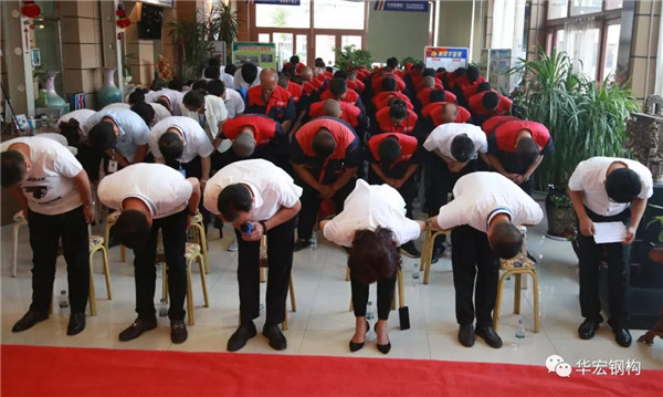 2018年7月4日18时,在公司总部阳光大厅举行了《华宏钢构第三十届“每月岗位之星”表彰大会》,公司董事长朱宏志、总经理朱宏勇、财务总监刘肖及华宏钢构全体员工参加了大会。大会实况如