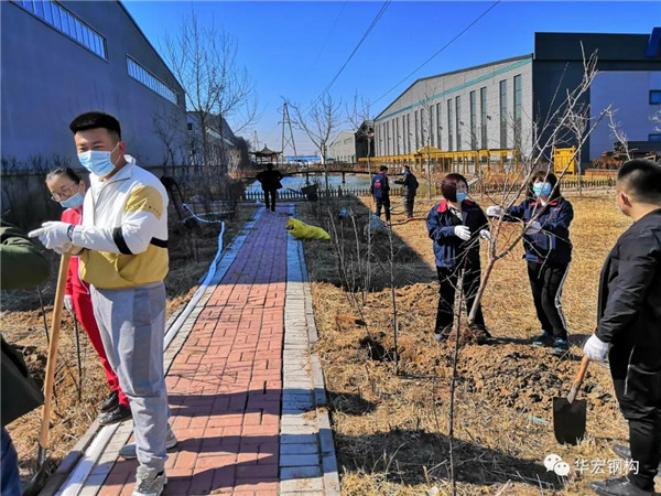在此次主题植树活动中,公司所有家人们紧密团结,互帮互助,**展现了华宏钢构企业员工积极向上的精神风貌和“不折不扣,马上行动”的工作理念。这是团队凝聚力的体现,同时也是团队行动力的彰显,正像《华宏梦·我们的梦》中歌词写的那样:团结精进,一直在路上,付出担当,让青春绽放!