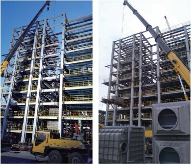 技术亮点:框架总高度为28.6米,单体结构1000吨,本装置为炼油厂核心框架,构建复杂,技术精度要求高。
