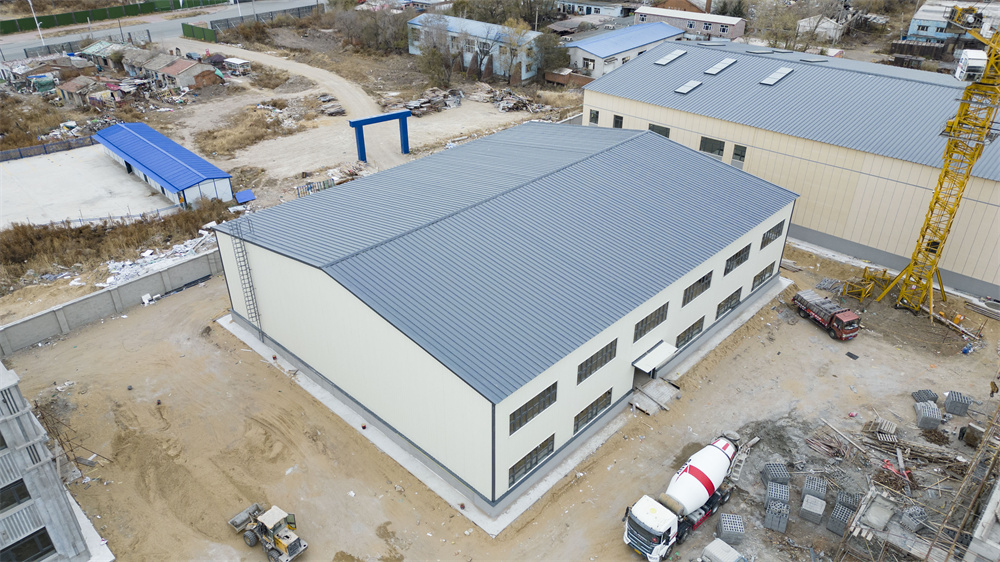 单个工程总建筑面积为:10077㎡,室外设计地面*其口与屋脊的平均高度为13.3米,墙面采用砌体结构,屋面采用轻钢屋架结构,结构为高低跨,不规则形状,加工构件种类多,对安装精度要求高,屋面维护为150厚岩棉复合压型钢板坡屋面,设有多个采光带,屋面单玻长,板重施工难度大,防水要求高。